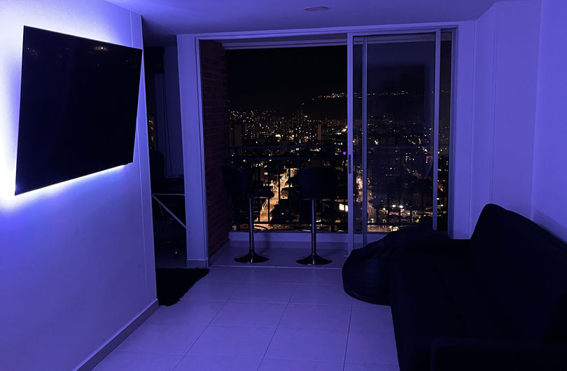 Disfruta de habitación super amplia con baño privado en apartamento penthouse compartido con vista maravillosa en el piso 26 ubicado en el centro de la ciudad, con buena accesibilidad, parqueadero, ideal para trabajar o filosofar. Cuentas con la posibilidad de cocinar, wifi, baño, minimalista y particularmente TODO es de color negro. Es perfecto para viajeros o alejarse de lo tradicional.